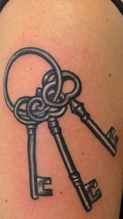 手臂彩色欧美骷髅头玫瑰花纹身图案