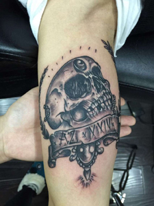 漂亮的美女肖像和蝴蝶结合的手臂纹身