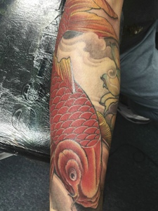 翩翩起舞的花色蝴蝶手臂纹身图片