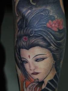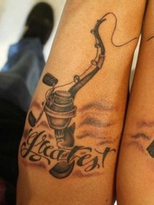 手臂外侧玫瑰匕首纹身图片很嚣张