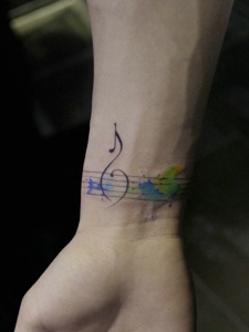 白衣男子手臂外侧阿拉伯数字纹身图片