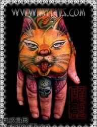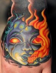 手背纹身图片:手背欧美鬼娃娃面具火焰纹身图片纹身作品