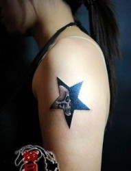 骷髅五角星纹身图片:手臂骷髅五角星纹身图片纹身作品