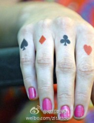 美女手指黑桃爱心梅花方片纹身