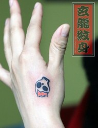 女孩子手背可爱的图腾骷髅纹身图片