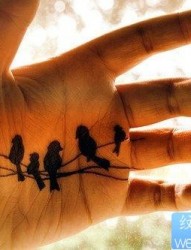 一幅手掌图腾小鸟纹身图片