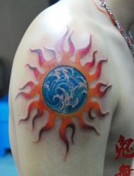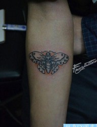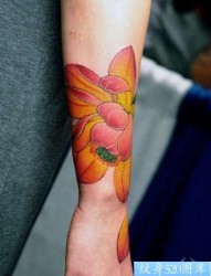 手臂流行的水墨画风格莲花鲤鱼纹身图片