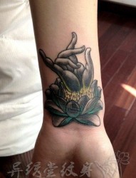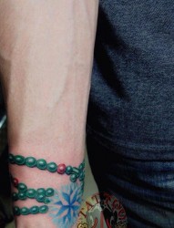 女人手腕小巧潮流的彩色星空闪电纹身图片