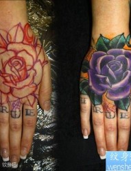 手臂内侧经典的欧美彩色玫瑰花纹身图片