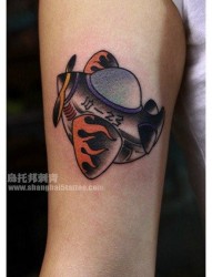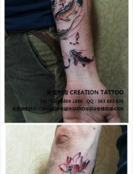 男人手臂潮流好看的水墨鲤鱼莲花纹身图片