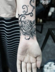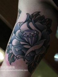 手臂内侧时尚精美的钻石与玫瑰纹身图片