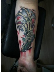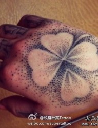 手臂潮流经典的一幅点刺四叶草纹身图片