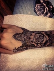 女人手腕唯美精美的玫瑰花与蕾丝纹身图片