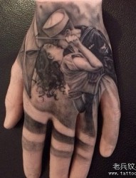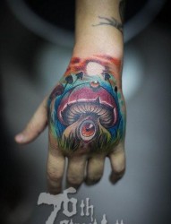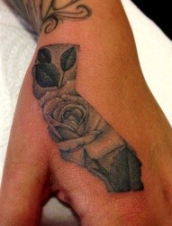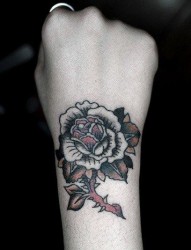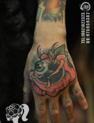 手背时尚潮流的玫瑰花眼睛纹身图片
