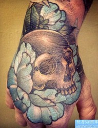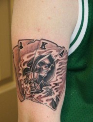 手臂骷髅手扑克牌纹身图片由纹身520图库推荐