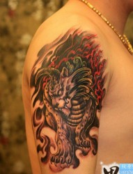 纹身520图库推荐一幅大臂麒麟纹身图片