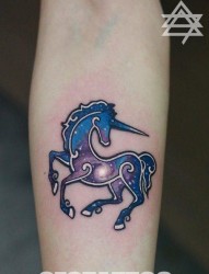 纹身520图库推荐一幅彩色独角兽纹身图片