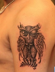 一幅手臂猫头鹰纹身图片由纹身520图库推荐