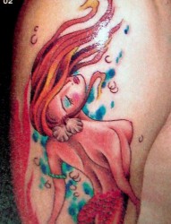 纹身520图库推荐一幅大臂美人鱼纹身图片