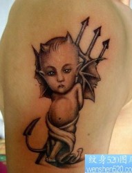 纹身520图库推荐一幅大臂天使恶魔文身图片