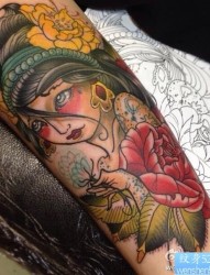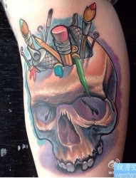 纹身520图库推荐一幅手臂骷髅头纹身图片