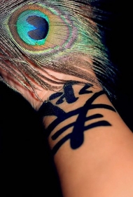 手腕大胆黑色的汉字纹身图案