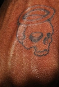 手部黑色简约骷髅纹身图案