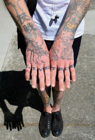 手部彩色极客发烧友纹身图案