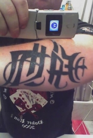 手臂黑色字符花体纹身图案