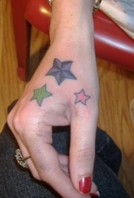 手部彩色五芒星纹身图案