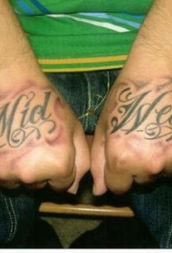 手部卷曲英文字母纹身图案