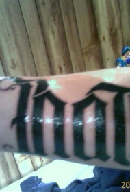 手臂黑色双向图文字纹身图片
