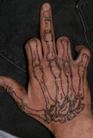 手部黑色无色骨骼手纹身图案