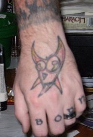 手背彩色个性卡通猫纹身图案
