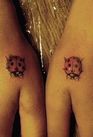 手部彩色两个小艳瓢虫纹身图案