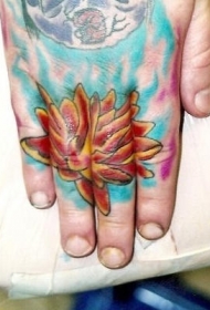 手部彩色植物百合花纹身图案