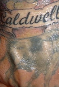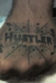手部黑色英文字母纹身图案