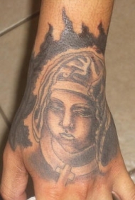 手部灰色谨慎的修女肖像纹身图片