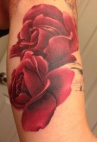 手臂彩色两个娇嫩的红玫瑰纹身图案