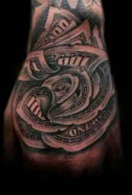 手部棕色玫瑰形状美元纹身图案
