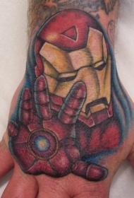 手背彩色钢铁侠纹身图案