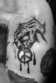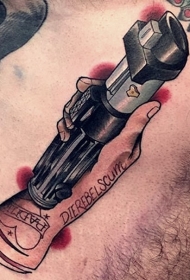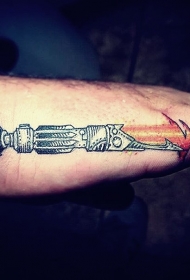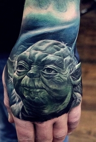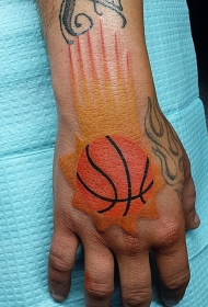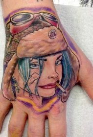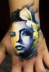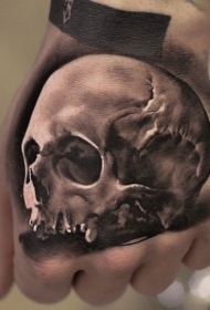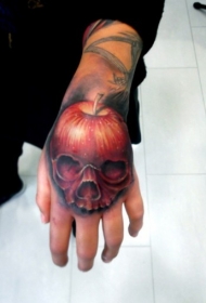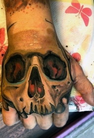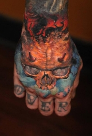 手背彩色逼真的恶魔头骨与火焰纹身图案