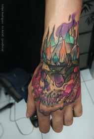 手臂彩色印度教风格钻石玫瑰纹身图案