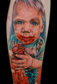 手臂彩色恐怖风格血淋淋小男孩纹身