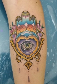 五颜六色的法蒂玛之手和神秘眼睛手臂纹身图案