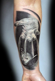 独特设计的彩色手与时钟手臂纹身图案