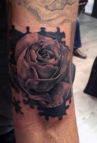 天然的黑灰玫瑰和拼图手臂纹身图案