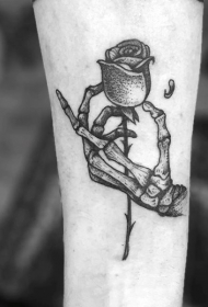 手臂有趣的手绘黑色点刺骷髅手与花朵纹身图案