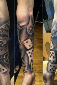 手臂赌博轮盘和扑克牌骰子纹身图案