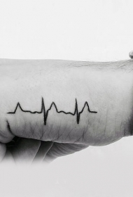 手部黑色的简约心电图纹身图案